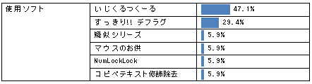 前回と同様でして、ダウンロード数では「すっきり!! デフラグ > いじくるつくーる」なのに、アンケートでは「すっきり!! デフラグ < いじくるつくーる」と出ます。