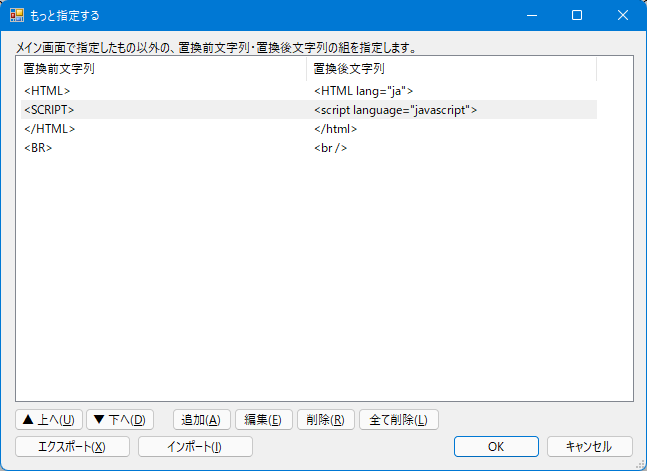 - 置換前文字列・置換後文字列の組をもっと指定する