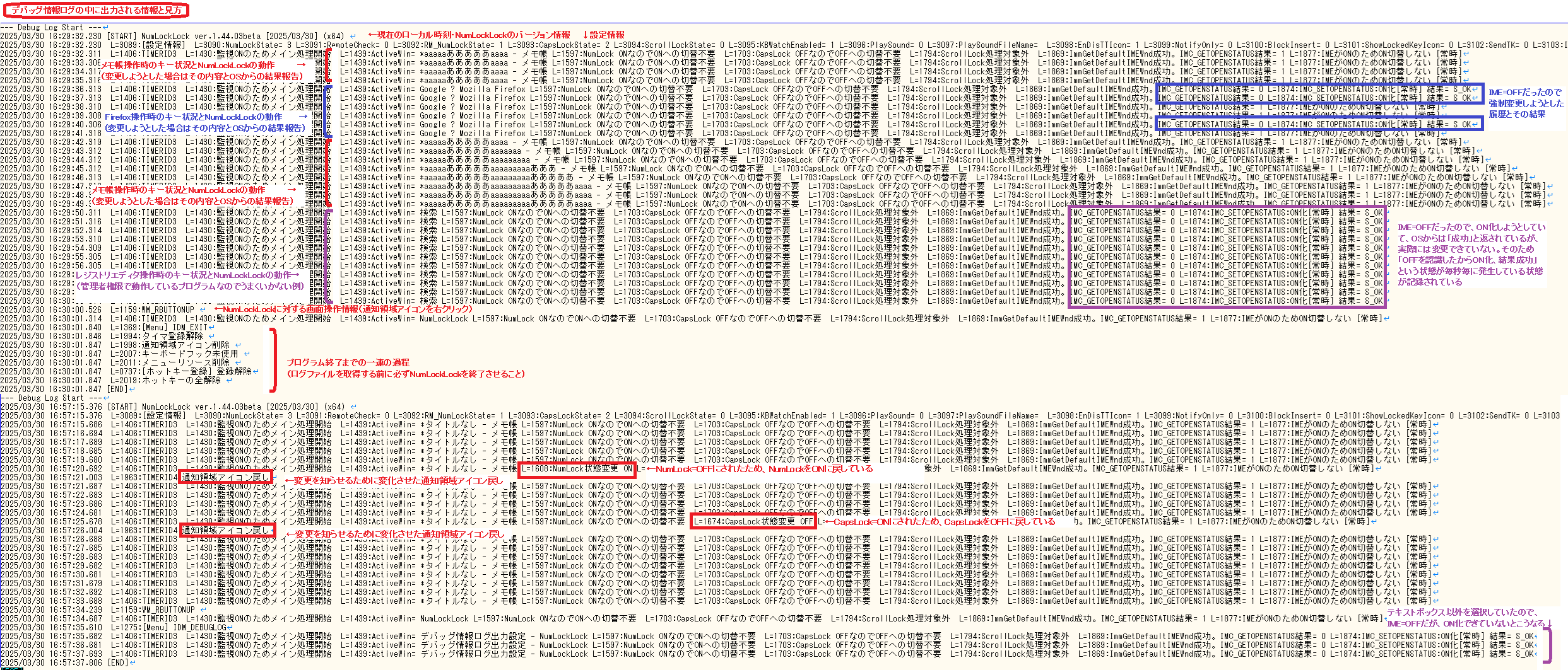 そのため、本デバッグログを作者に提供するにあたっては、おかしな事象が発生した時の画面等の状況と共に、その現象が発生したのが何時何分何秒だったかを正確にお伝えください。